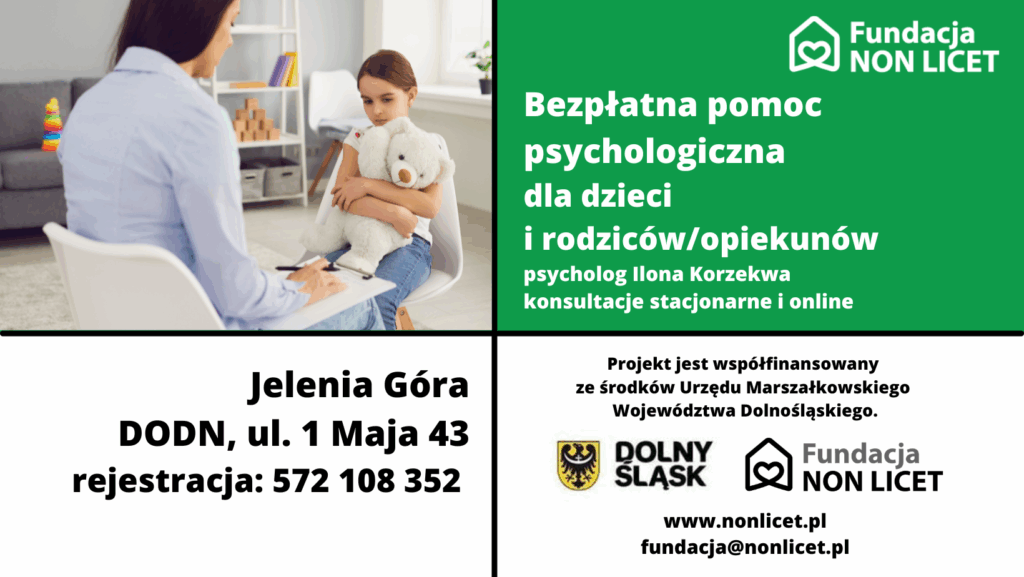 JELENIA GÓRA i okolice – bezpłatna pomoc psychologiczna dla dzieci, rodziców/opiekunów i osób pracujących z dziećmi