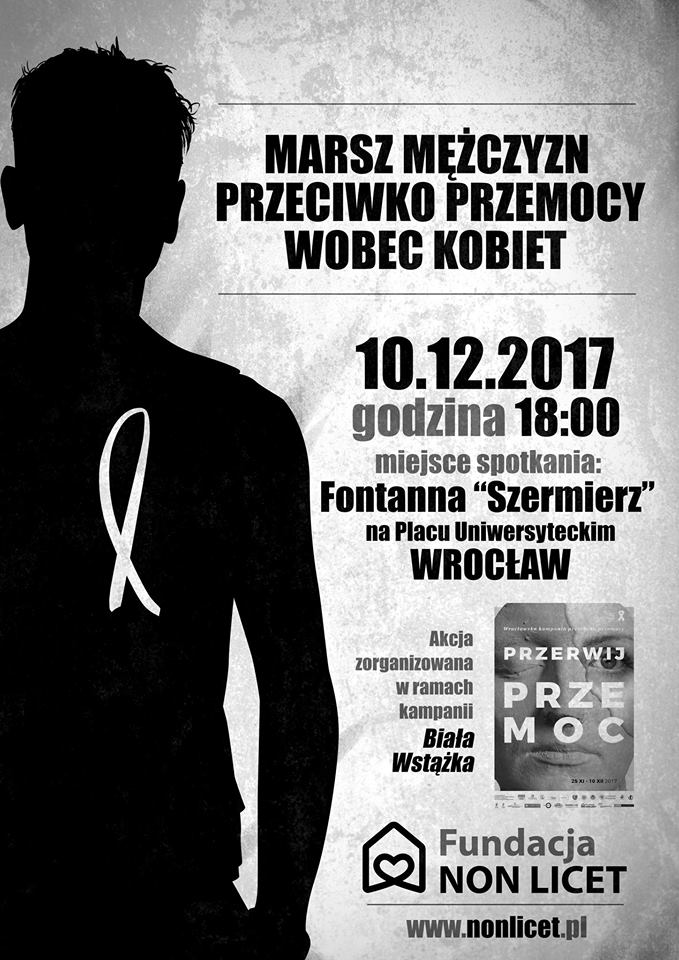 Fundacja NON LICET jako partner Kampanii Białej Wstążki we Wrocławiu organizuje Marsz Mężczyzn Przeciwko Przemocy