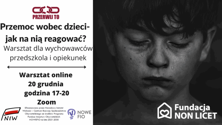 Serdecznie zapraszamy opiekunki dziecięce i nauczycieli wychowania przedszkolnego na warsztaty dotyczące problemu przemocy wobec dzieci