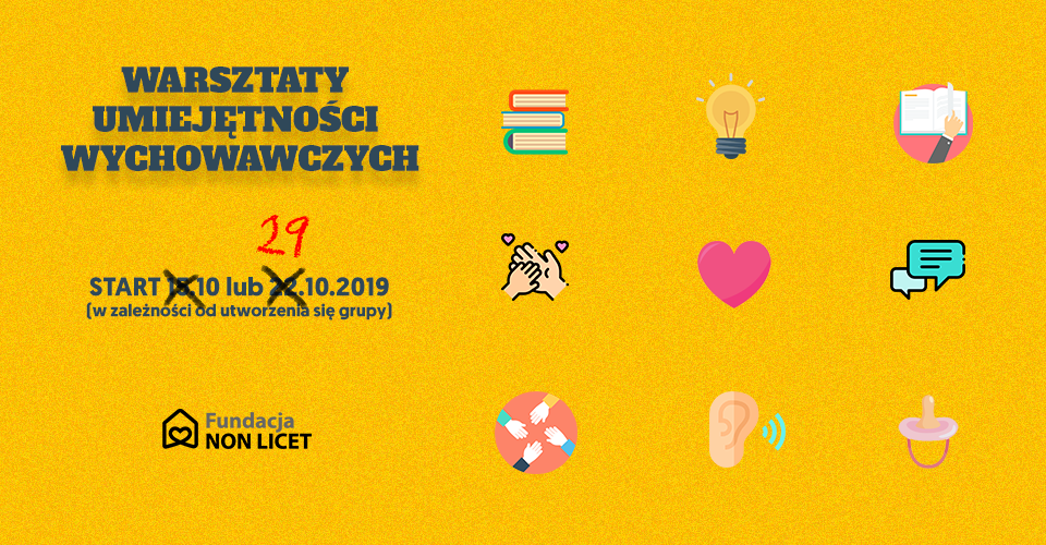 Zapraszamy rodziców dzieci w wieku ok 3-12 lat na Warsztaty Umiejętności Wychowawczych inspirowane Programem „Szkoła dla Rodziców i Wychowawców” opartym na cyklu książek A. Faber i E. Mazlish.